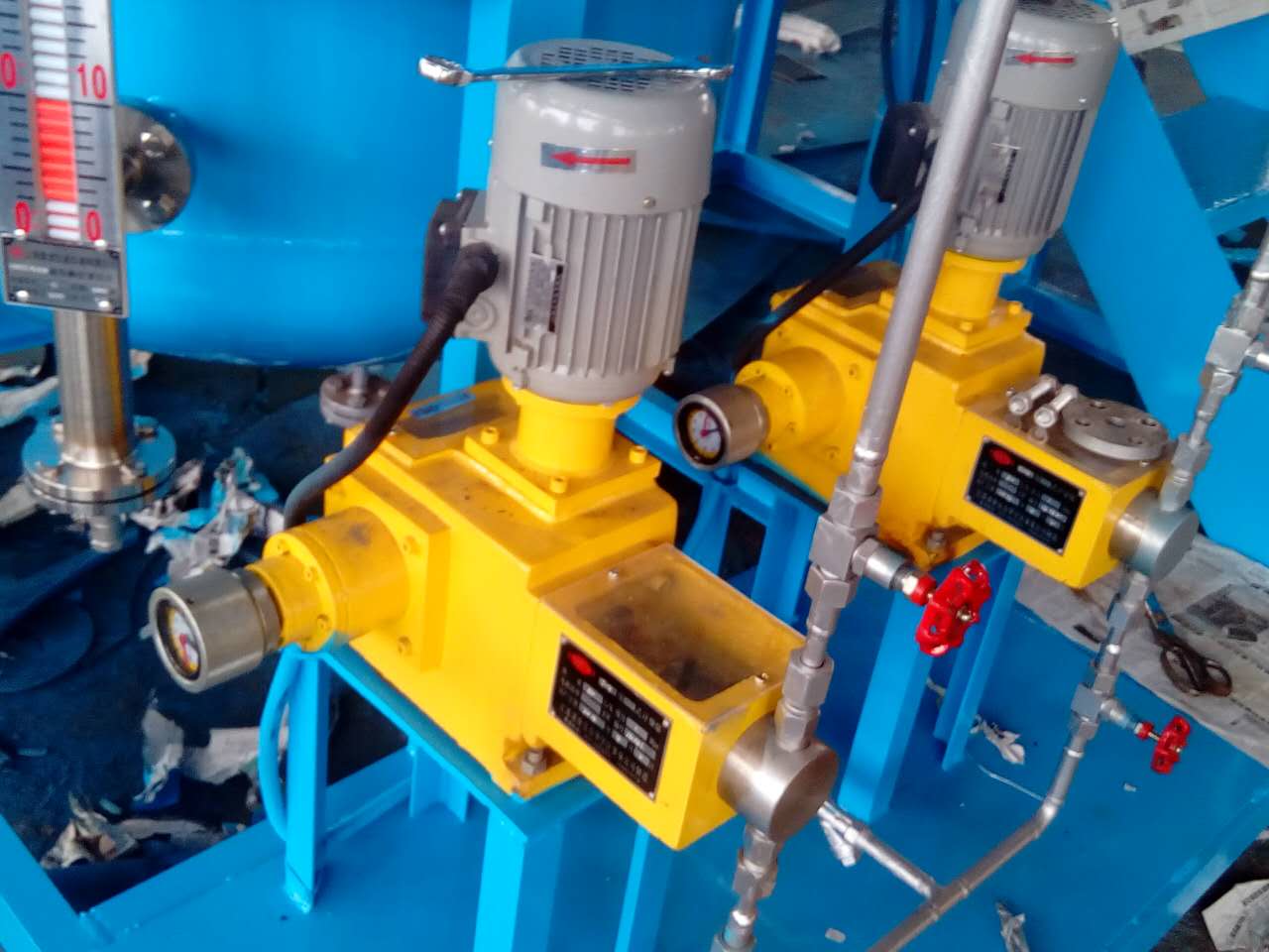 1、油田磷酸鹽加藥裝置。主要用于在石油開(kāi)采-向平臺(tái)上的井口和及其他系統(tǒng)注入絮凝劑、阻垢劑、緩蝕劑、破乳劑等各種藥液。