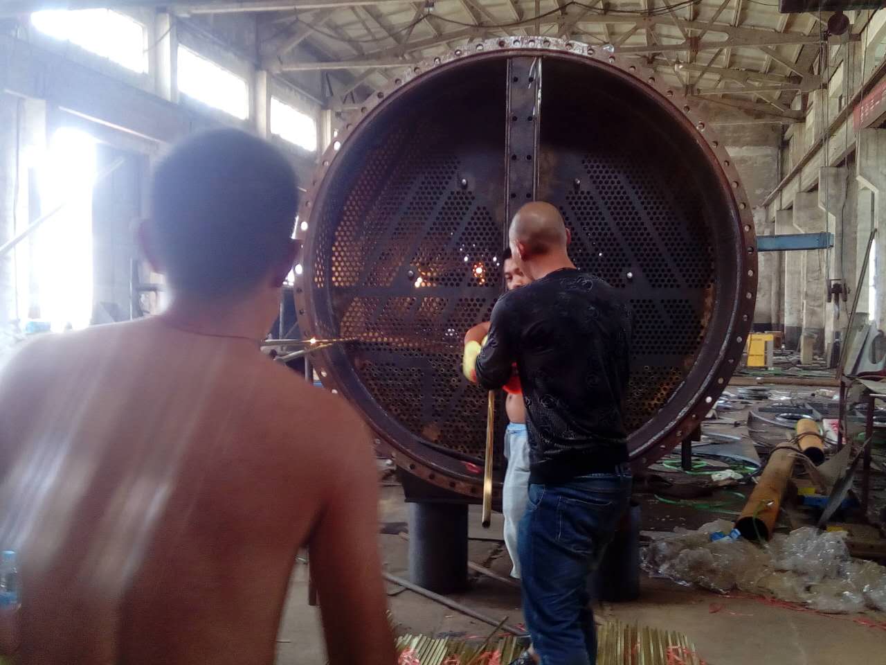 6.為了消除換熱管焊接應(yīng)力,在保護(hù)氣體-以1050℃高溫進(jìn)行熱處理。